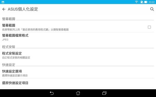 像是 ZenMotion,手勢操作的設定,開啟後可以點進去針對各別功能去設定,這手勢功能在平板裡可是不可或缺的好功能,因為螢幕較大,操作手勢上比起手機更加的方便,強烈建議要習慣使用,會上癮的。