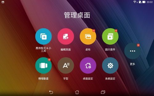 桌面管理的部份,除了基本的桌面、桌布、小工具調整之外,我們也可以在這裡更換字型、轉場動畫以及圖示變更等。