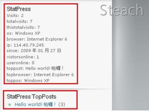 StatPress和StatPress TopPosts到你要的sidebar