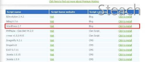 那麼我們就選擇《Wordpress2.7》→Click to install
