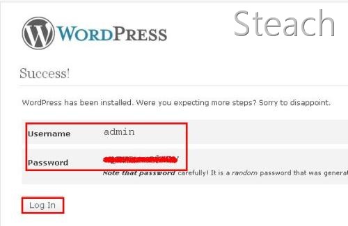 按下《Install Wordpress》即完成安裝,產生管理員密碼,登入後台吧!!