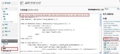 後台中至外觀→編輯→選擇index.php