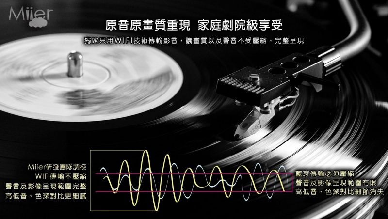 包括音質也是,透過 Wi-Fi 技術來傳輸,因此畫質與聲音都是沒有經過壓縮,完整的原畫質原音重現。