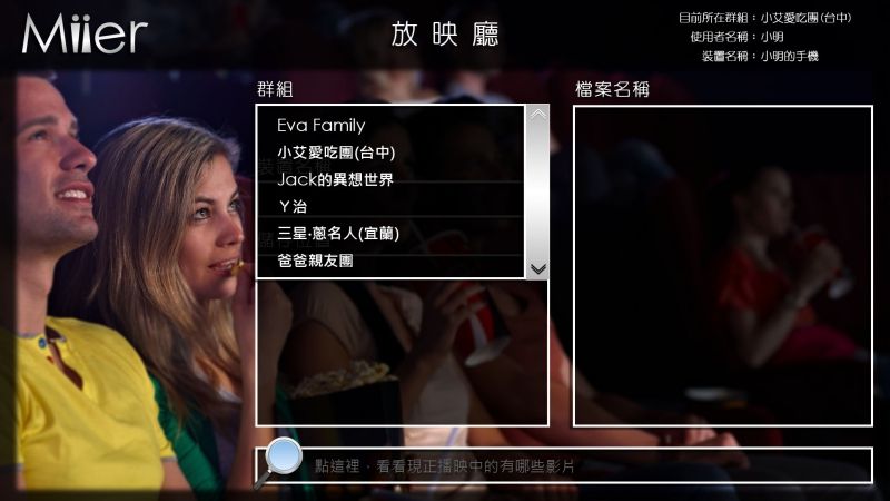 也由於 Miier 電視盒已經不再受限於家裡的群組使用,那麼將影音進行群組分類授權當然是必要的,這一點也早已經設計在內,你可以針對不同群組分享不同的內容,包括原本的放映廳功能也是一樣。群組化的概念是非常棒的,不再只侷限於自己的電視盒,而是具有「社群」分享的電視盒。