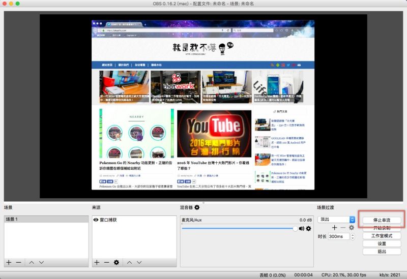 接下來在開始直播前,開始選擇要直播什麼畫面,比如阿湯透過建立場景後,選擇的是電腦的瀏覽器畫面,你也可以選擇你的視訊(視頻捕捉設備),相關設定大家可以自行研究一下,沒有很難。