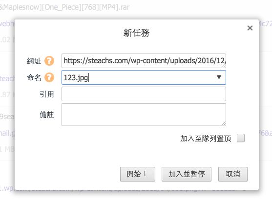 除了透過網頁點擊下載,也可以自己貼上載點新增下載。
