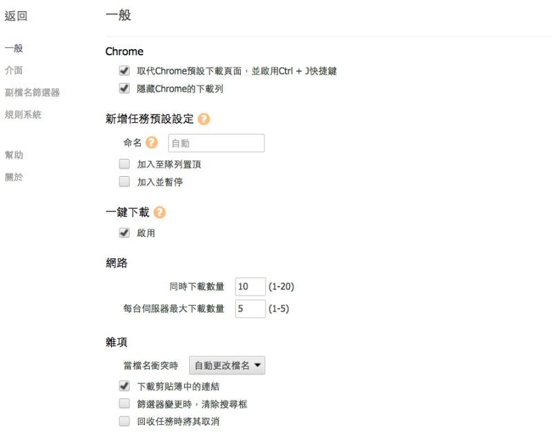 另外 Google Chrome 預設只能同時下載 6 個檔案,透過這個管理工具,最大可以同時下載 20 個檔案,還有一些相關設定,大家都可以依 需求自行設定,真的是很方便的一款下載管理器,強烈推薦大家啊!