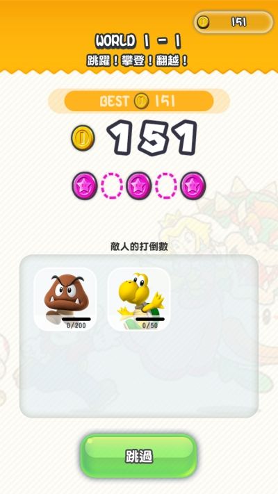 這款瑪莉歐跑酷遊戲目前有 6 個世界共 24 關卡,不過除此之外,遊戲的機制還包含建立王國,好友對戰機制(挑戰分數,非實時對戰)等,真的是比想像的多太多東西了。