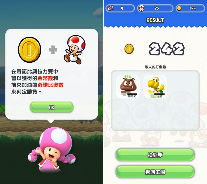 在遊戲的機制中,有一個奇諾比奧拉力賽,簡單的說就是比賽誰金幣吃的多。