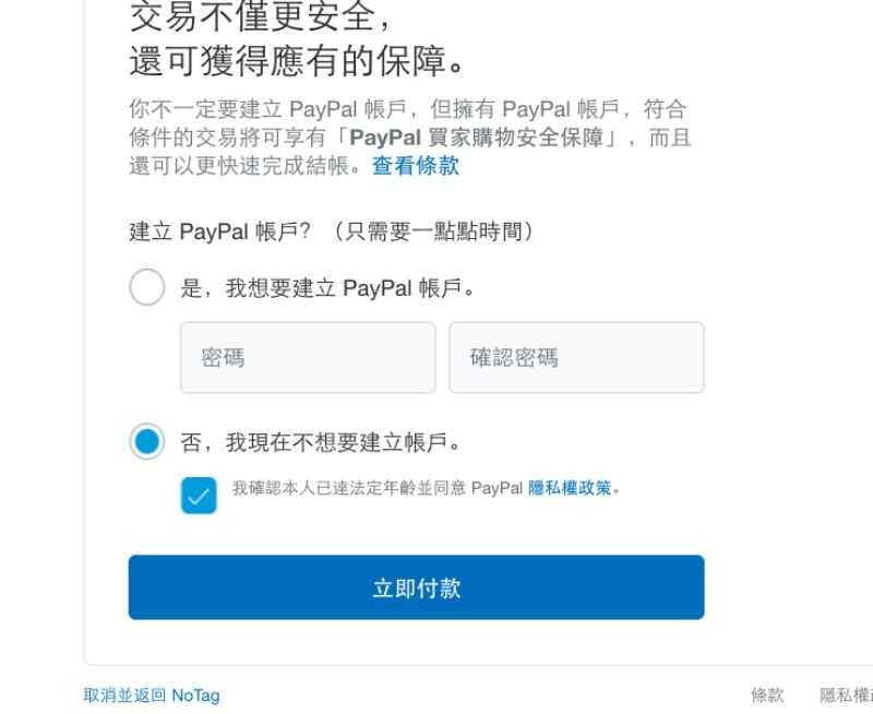 然後,就不要建立帳戶,直接付款吧。