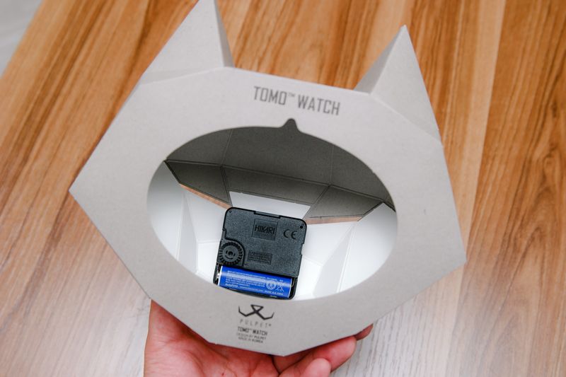 時鐘最後的完成品像這樣,基本上和網站上展示的一模一樣,這是真的可以動的時鐘,用的是一顆三號電池,而且阿湯原本以為他是會有滴搭滴搭的那種秒數指針,結果是圓滑型的,不會有聲音的,真的相當棒啊!