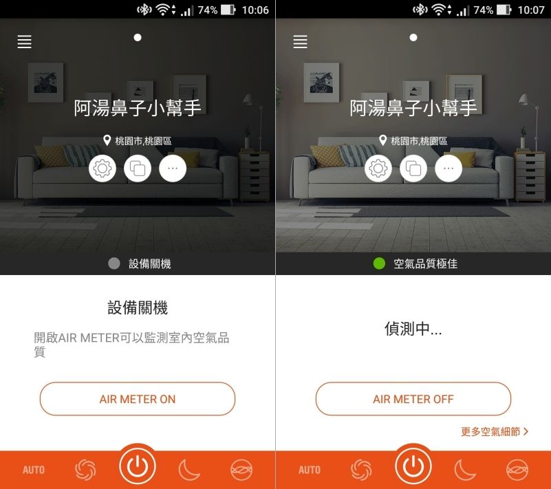 就算你時間比較不固定,出門也常忘記要關閉電源,也沒關係,雖然空淨機其實本來耗電量不高,但如果你想要省一點電費,在出門後同樣可以透過 APP 手動開關機。