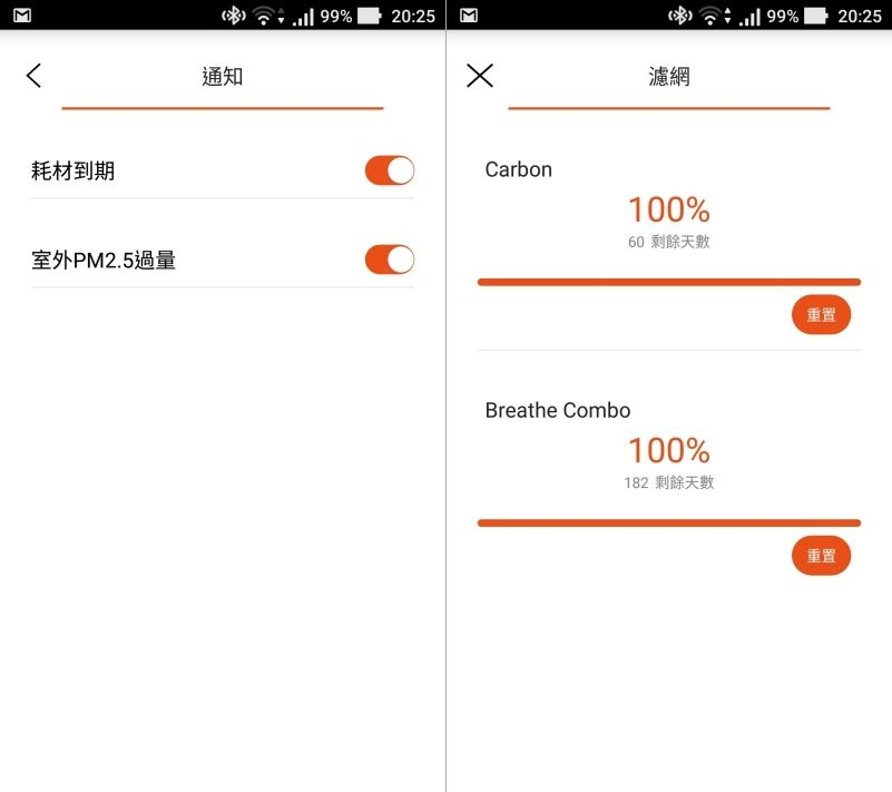 比如你剛開機啟用時可能 Carbon 只有剩餘 60 天,不過隨著你的使用不同,也會再看到他增減,但當 APP 通知你要更換時,就真的是要換了。