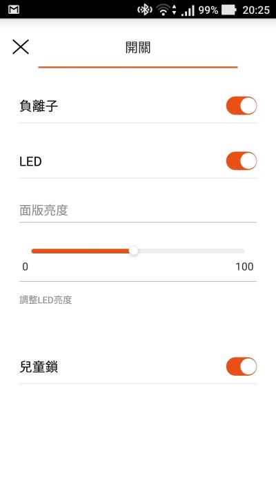 BRISE 包含可以開啟負離子,如果是在臥房使用,也能選擇關閉 LED 燈號,像阿湯就無法在睡覺時有亮光(一定要全黑啊)。另外也設定了兒童鎖,避免家裡小孩亂按,或者寵物不小心誤觸。