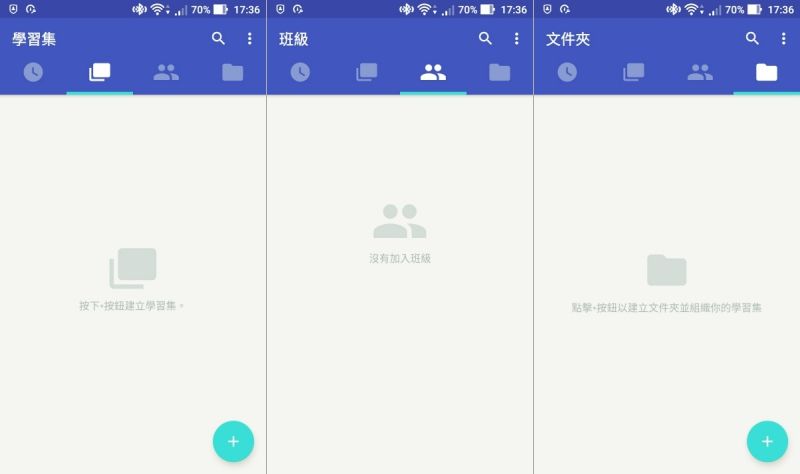 第一次登入使用會看到全部空白,阿湯一開始其實以為這是跟一般學習語言的 APP 一樣,就是有一些單字群或學習的東西,點進來全空白讓我突然不知所措,後來才發現原來是需要自己建立或是去搜尋他人的學習集。