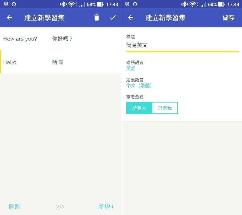 如果你也想建立自己的學習集或分享給其他人,就直接在學習集裡建立後,一行一行的輸入新增內容,建議可以透過網頁版,使用電腦來輸入我相信會更很多,建立之後可以選擇要不要公開,如果公開的話,就可以被搜尋到並加入使用。