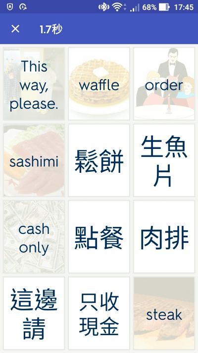 學習集就像這樣,一個一個網下,有些還有圖示,對於記憶更加的方便,而發音的部份是自動的,不是個人錄製,所以不會有發音不準的問題。