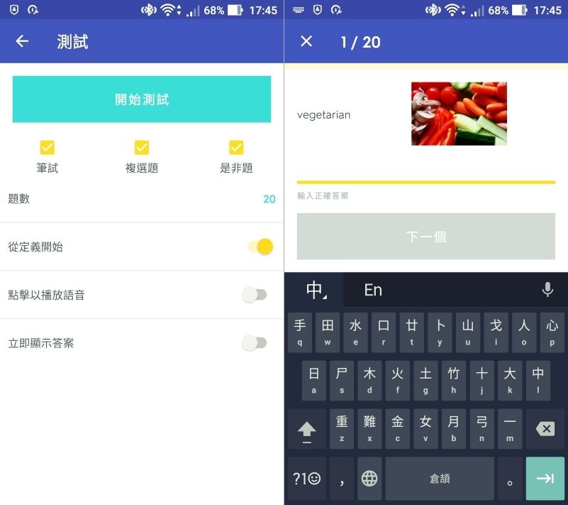 最後測試,有各種方式來進行,阿湯覺得比起反複看著單字背頌再背頌,這樣的字卡學習方式還不錯,不僅是用在英文,各種語言都適用。