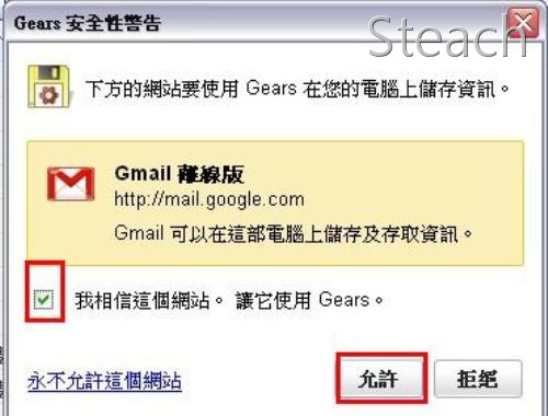 8.當安裝完Gears就可以繼續安裝離線版的Gmail囉,按下一步