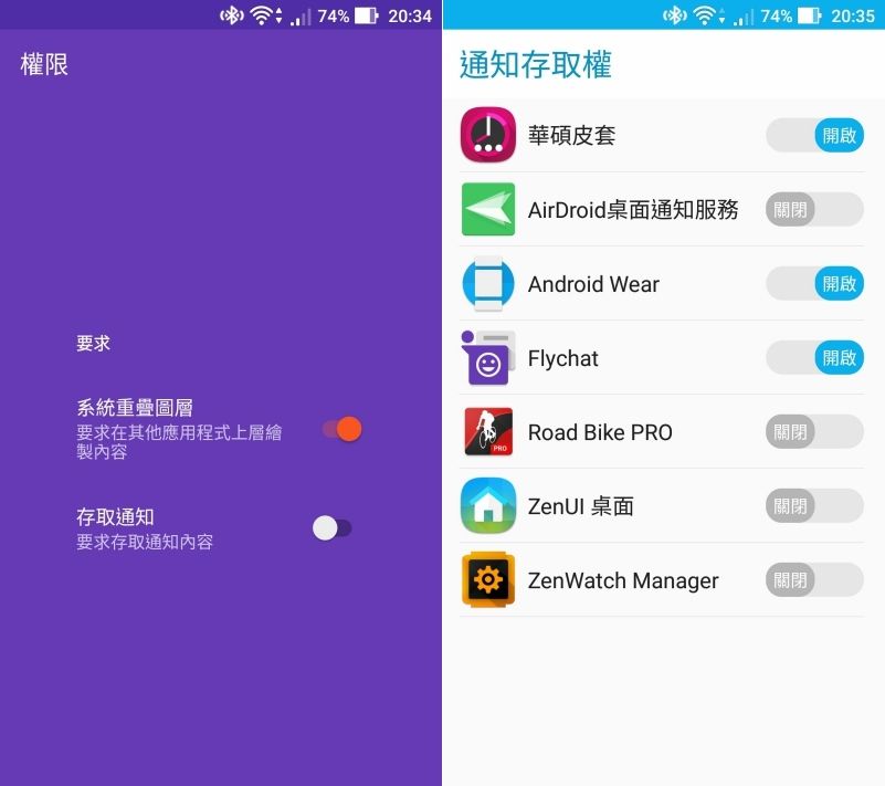 第一次安裝會需要系統重疊圖層及通知權限開啟,都打開才能正常使用。