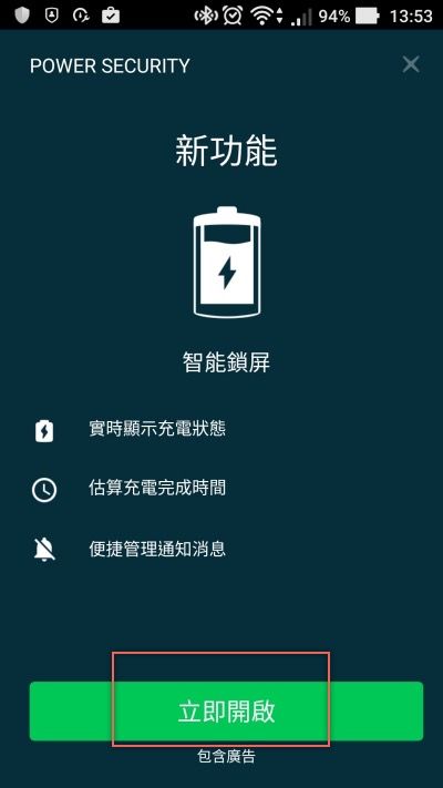 第一次執行會先問你要不要開啟新功能,可以即時的顯示充電狀態、估算充電完成時間等(鎖屏畫面時顯示)。