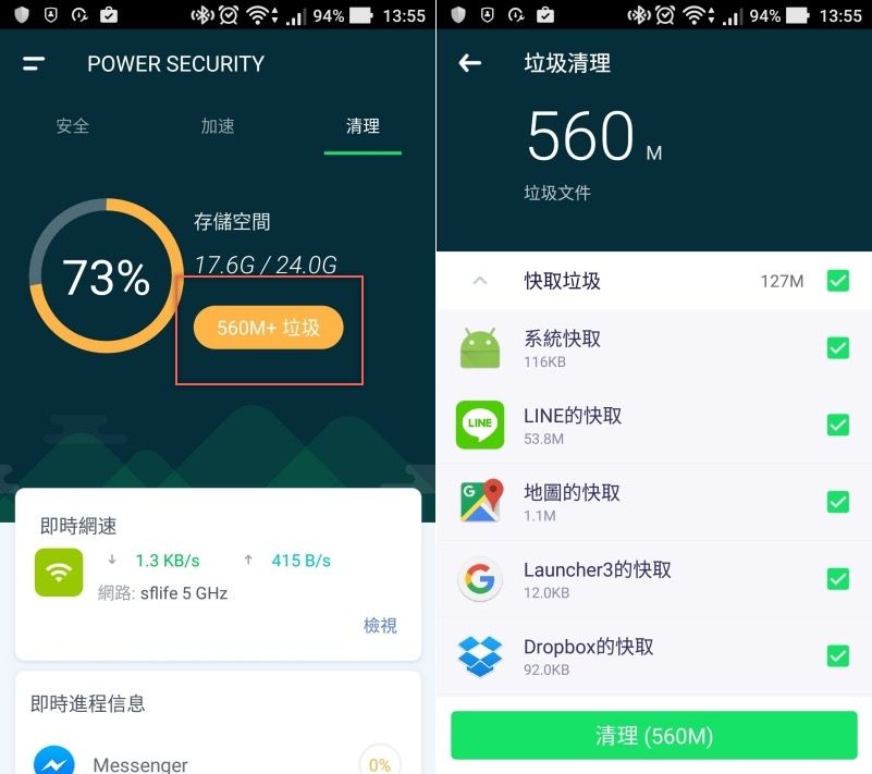 垃圾清理的部份,會針對 APP 的快取檔案進行清除,這個還蠻推薦的,可以定期清理。