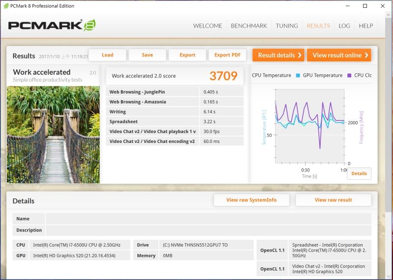 PCMark 的工作模式下則是獲得 3709 分。