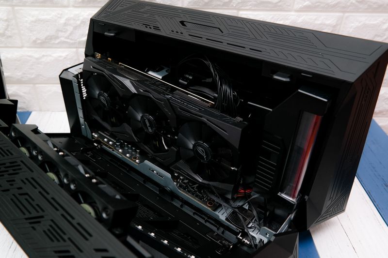 來看看這台的內部,這真的不是開玩笑的,超大一片顯示卡 NVIDIA® GeForce® GTX™ 1080 以及散熱系統。