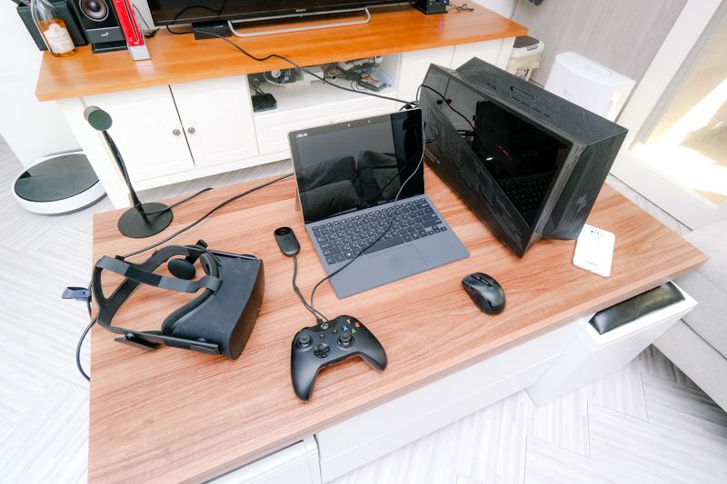 ASUS Transformer 3 Pro T303 本身非常的輕薄,既可以做為平板也是筆電,本身的 CPU、記憶體及 SSD 都有很不錯的規格,讓我們平常外出工作使用時綽綽有餘,再加上擴充性非常的高,平常回到家或辦公室時,如果需要用到繪圖軟體或是想玩遊戲,就可以另外加購 ROG XG Station 2 外接顯示盒來搭配,大幅度的提升繪圖效能,不論是大量修圖、影片剪輯,或是玩 3D/VR 這一類的遊戲也都完全沒問題,這麼一來就不需要再區分所謂的筆電跟桌機,你可以另外購入螢幕跟無線鍵鼠,這樣回家只要接上 ROG XG Station 2 就可以馬上變成桌機模式,真的是非常的便利。