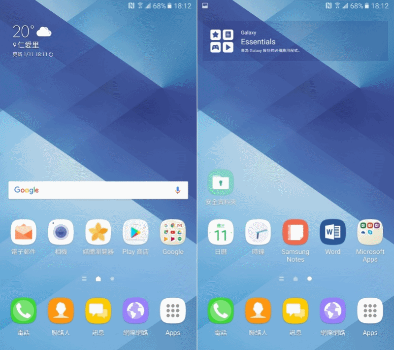 系統介面延續了 Samsung 在 2016 年時所推出的新版畫面,像是 Galaxy Note 5 現在新版軟體也採用這全新更加簡約的新介面。