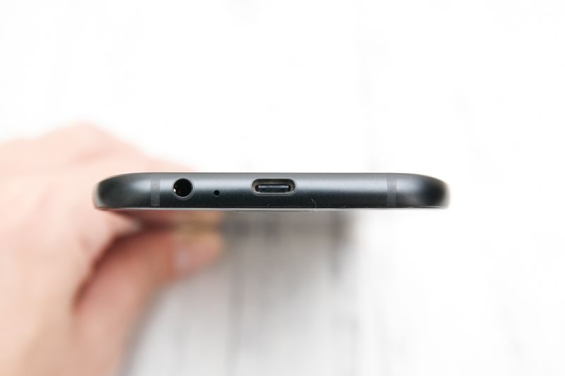 底部為 3.5mm 音源孔、麥克風收音孔以及採用正反皆可插的 USB Type-C 連接埠且支援閃電快充。