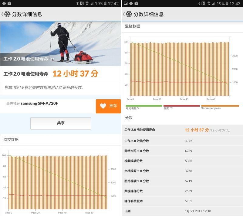 透過 PCMark 測試使用時間,獲得 12 小時 37 分,是相當久的時間啊,一天的使用是綽綽有餘了。