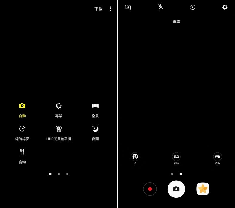往左滑則是可以選擇相機模式,其中同樣有專業模式可以選擇,可以依自己的需求來調整拍攝的基本參數。