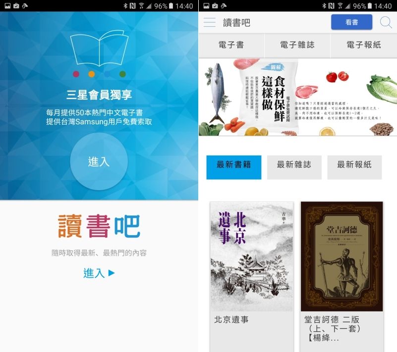 阿湯也提供一項好康消息,只要是三星手機用戶下載「享讀」APP,每月都能免費下載 50 本熱門中文電子書,優惠只到 2017/6/30,記得也可以多多利用。