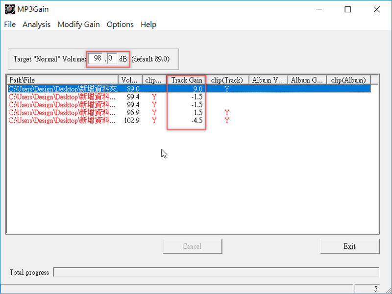 點擊「 Apply Track Gain 」套用音軌增益就會開始修正。