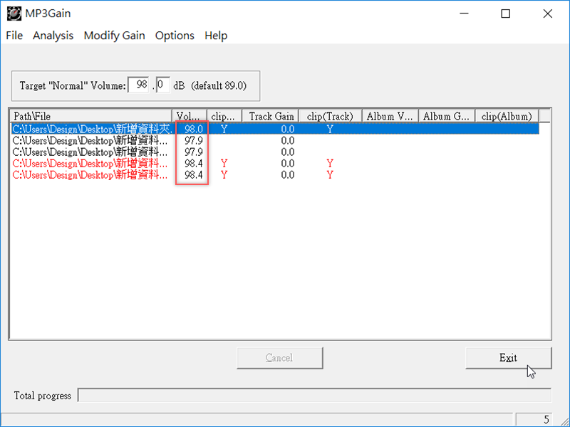 程式會將檔案統一修正到 98dB 左右的音量,且會自動變更,不需要另外儲存,完成可以選擇離開或繼續調整下一批。