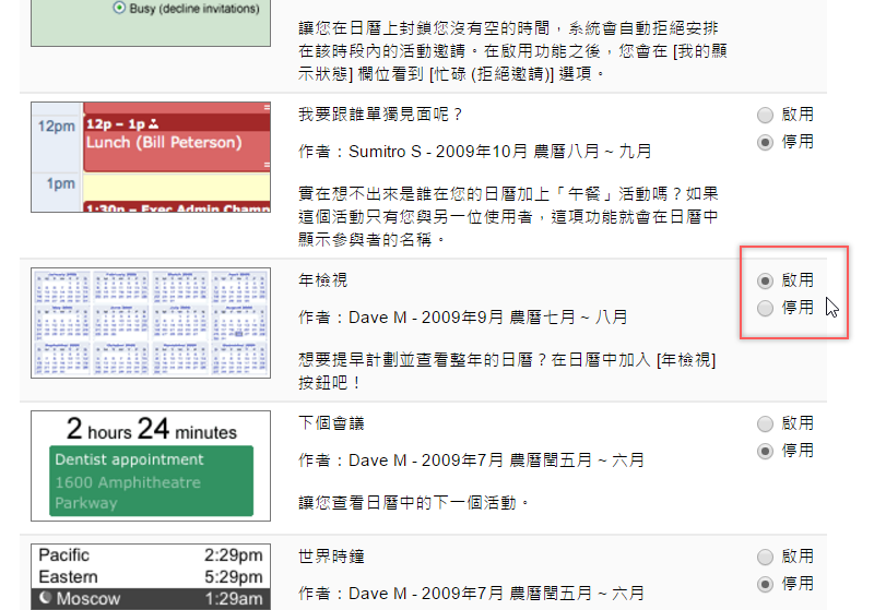 如何在 Google 日曆加入年檢視功能: