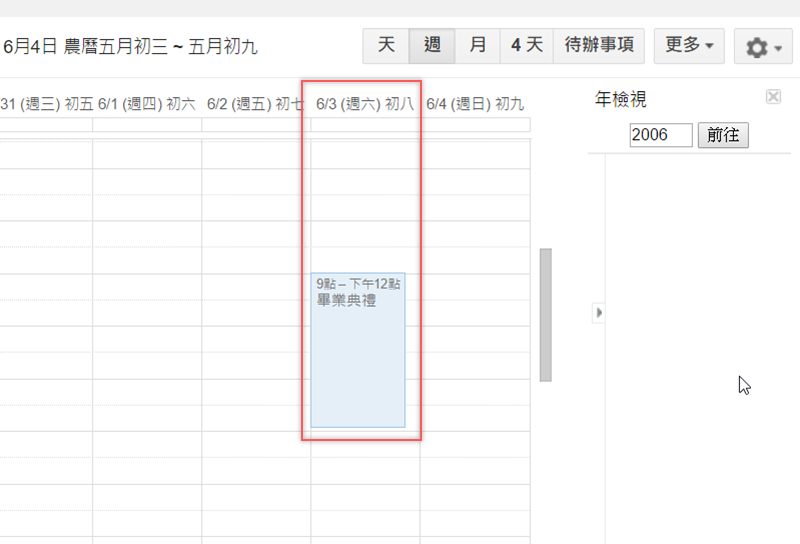 進一步選取要查詢的日期,發現那天的活動紀錄,證明阿湯沒有老人痴呆,那年的畢業典禮的確是禮拜六沒錯。