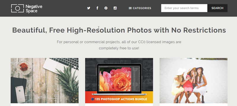 Negative Space 」同樣很厲害,內容都採用 CC0 授權的照片,除了可任意編修,還可以作為商業用途不需要標明出處,免註冊免登入,不過因為是 2017 年才新建立的網站,目前照片數量不多大概不到五百張,但類別豐富,基本的建築、風景、人物、動物、食物、商業、黑白等都有,照片品質很好解析度也夠高,重點是專業攝影師拍攝的看起來就很舒服啊。