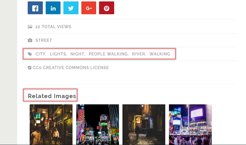 點簡介下面的關鍵字標籤,或是最後面的小縮圖,也會連結到相關的照片,看到覺得不錯的圖也可以直接選擇社群網站的小圖示來分享。