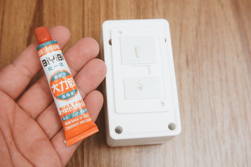 所以我就這樣固定,因為我家都是鏡子牆面,所以我只能用 3M,為了補強黏著度,我就在雙面膠上也用一點大力膠。