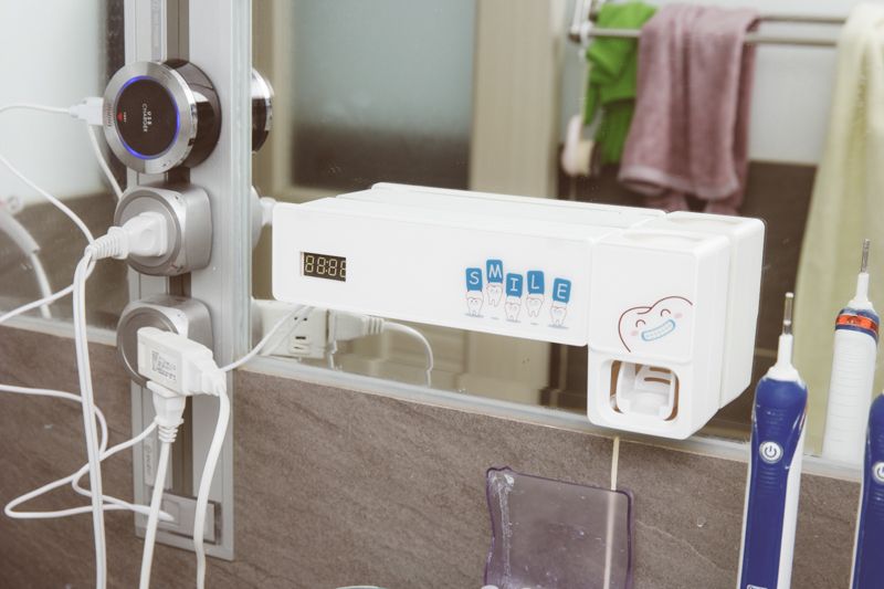 包含牙刷紫外線消毒器,擠牙膏架,USB 電線,變壓器,以及固定用的二片壁架跟固定用的 3M 雙面膠或者你要鑽牆的話,也有提供螺絲。由於有人反應雙面膠好像不夠力,所以店家隨機現在都有附一個萬能膠,讓你補強用。