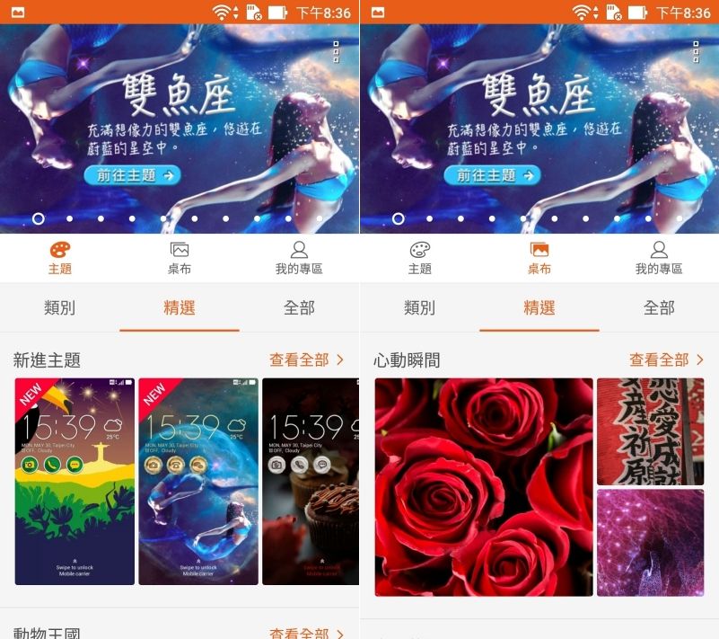 內建有主題商店,可以從這裡下載更多你喜歡的主題或桌布。