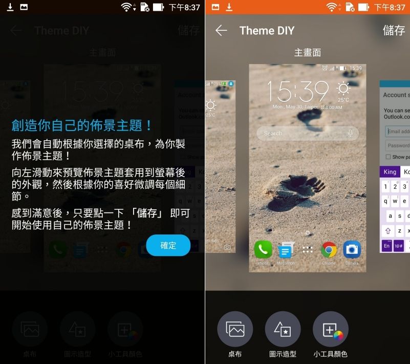 你也可以自行製作專屬的佈景主題,透過內建的自製功能自行打造。