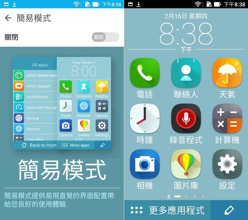 對於長輩用不慣智慧型手機介面的狀況,可以切換為簡易模式,讓操作更加簡化。