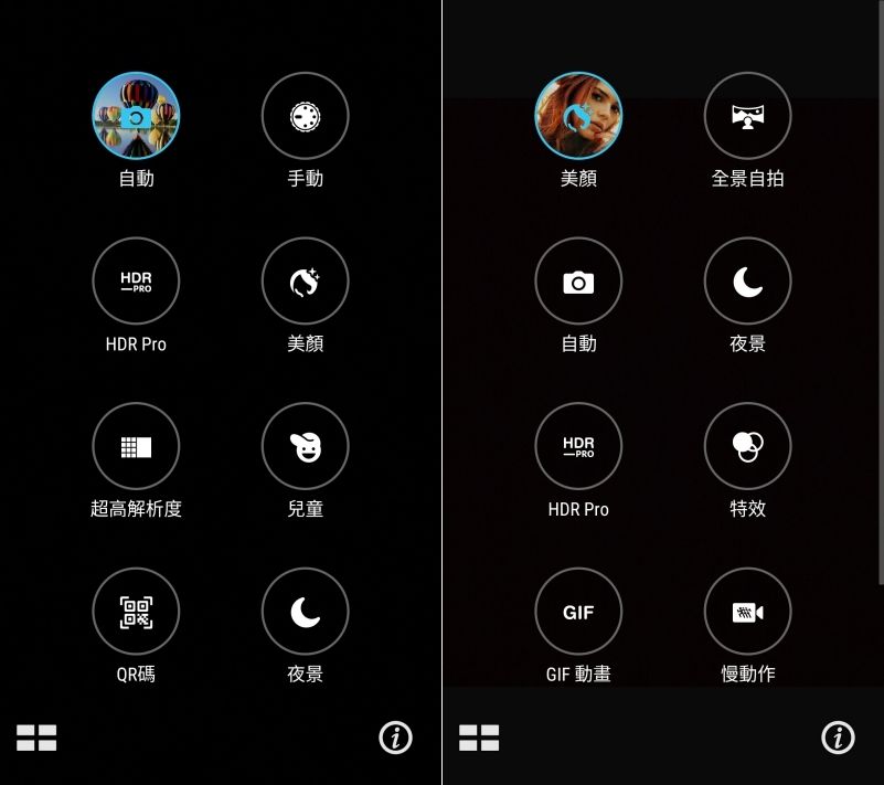 使用後方的鏡頭或自拍鏡頭都有非常多模式可使用,不必再下載其他相機 APP,原廠內建的最好用,而原本內建的低光源模式也已經整合到自動模式中,只要偵測到光源不足會自動切換,另外在 HDR 的部份也會依場景自動偵測啟動,但在模式中仍然有 HDR Pro 模式可手動切換使用。