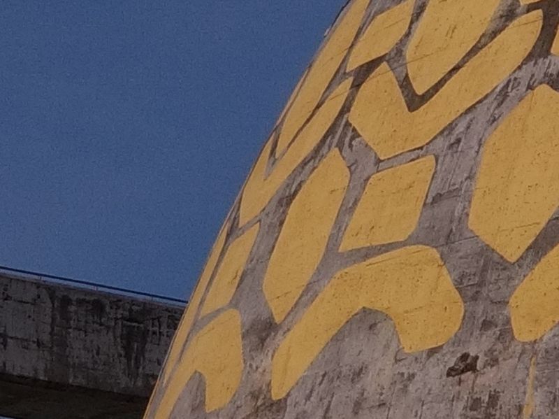 這張是使用 12 倍數位變焦拍攝,請大家再往回看一下剛剛 1 倍的拍攝畫面,就知道我站的多遠了,在 12 倍拍攝下,雖然畫質堪用,但像是這拱門上的圖樣是一清二楚。
