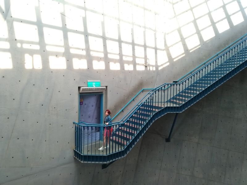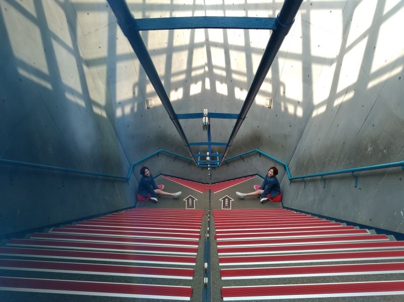 這張照片並沒有使用任何效果拍攝,鏡面效果是樓梯本身的玻璃反射哦。
