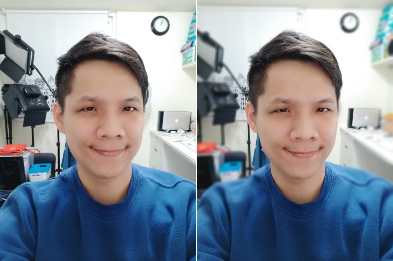 左邊是沒有虛化的狀態,右邊則是啟用了自拍背景虛化後的效果,是不是更加的突顯出自拍的人像,而且 OPPO 不透過雙鏡頭,只透過軟體調校就達到了這樣的背景虛化效果,真的是相當的強大。