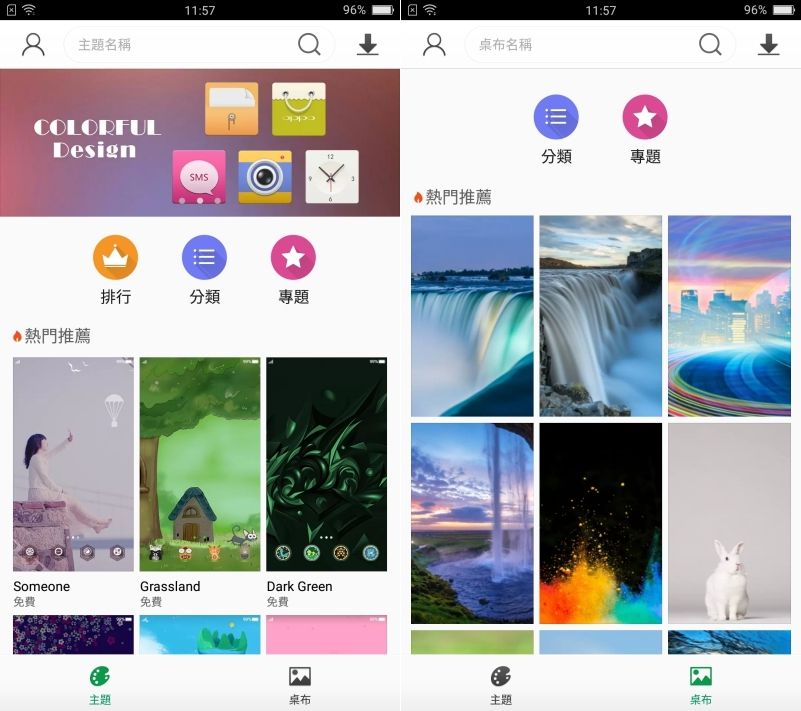 內建的主題商店可以自行下載更多主題及桌布進行替換。